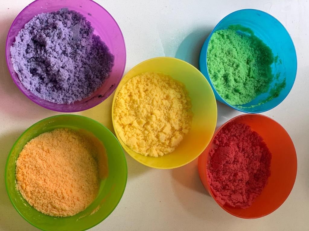 - Add food colouring to the salt the night before and let it dry out overnight.