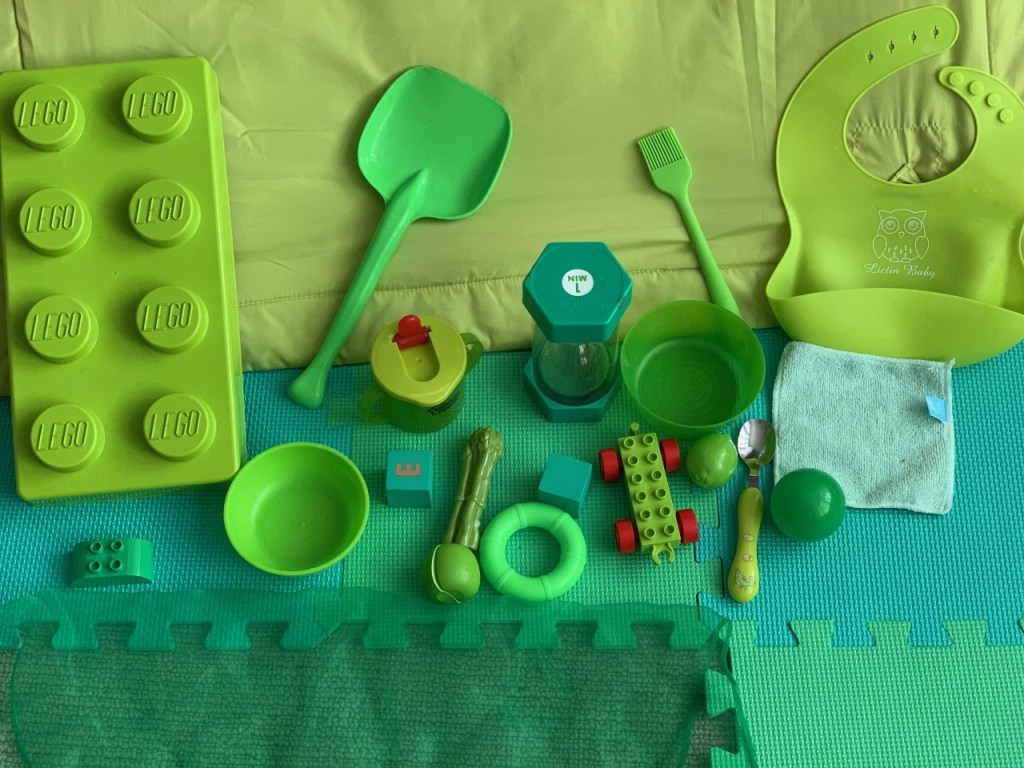- We are going on a green hunt. What green things can you find? Go and look and put them in a pile.