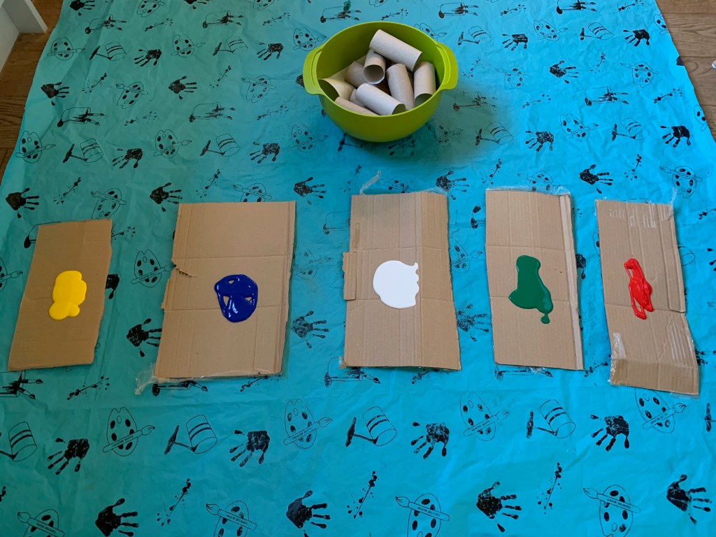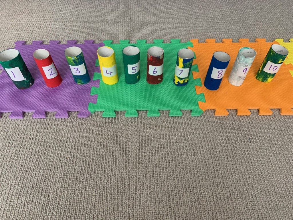 - You will need: 10 toilet rolls and paint on pieces of card.