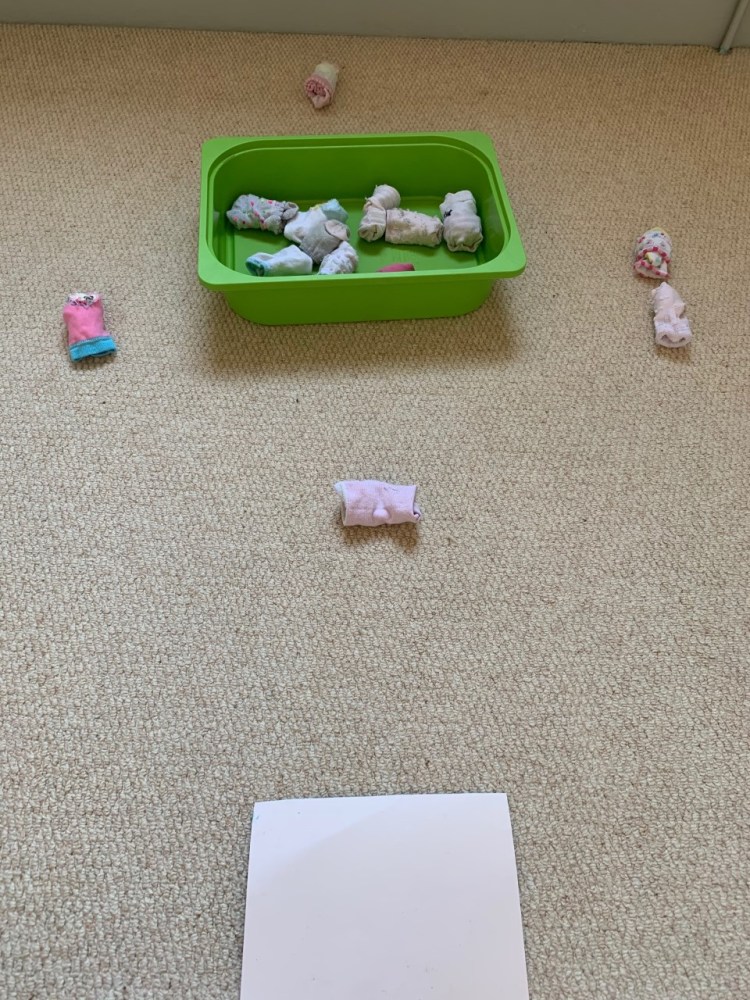 - After, they can use their counting skills to count how many pairs of socks are in the box and how many are outside the box. Which has more socks in it?