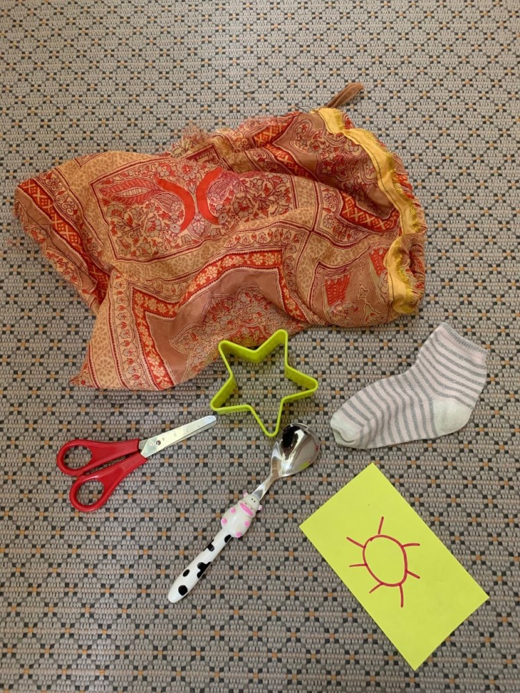- Have a phonics bag/box with 5 objects in it, starting with your sound. E.g. spoon, sock, scissors, star, sun. If you don’t have objects you could always draw them.