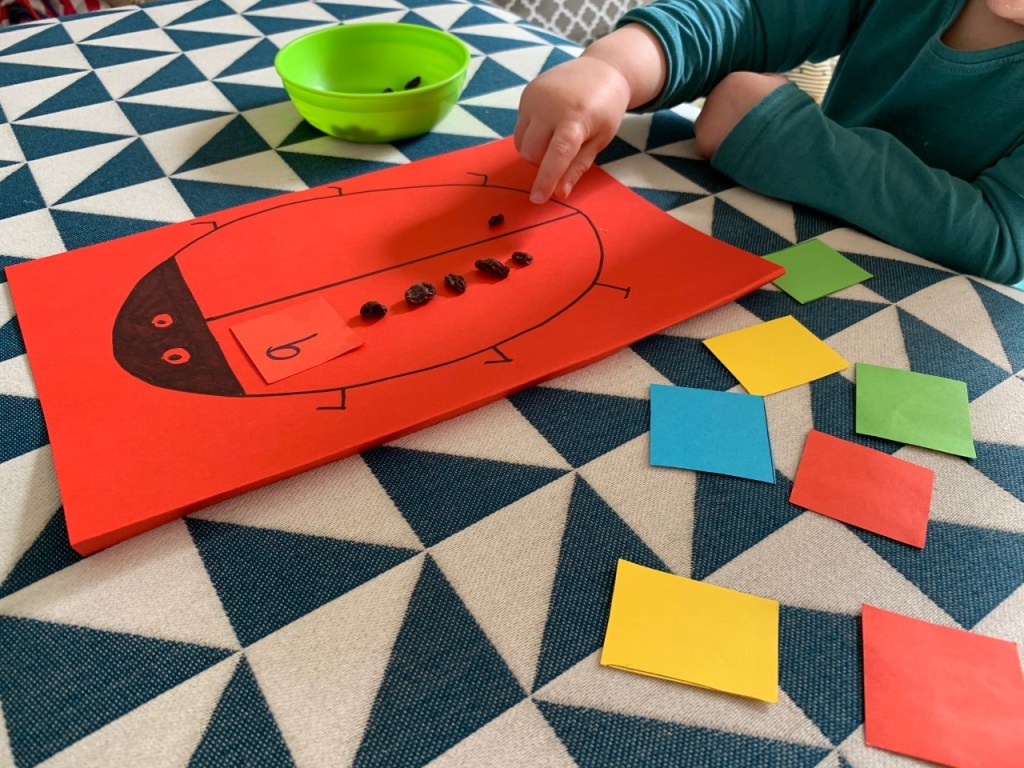 - Explain to your child that they are going to place the right number of spots on the ladybird.
