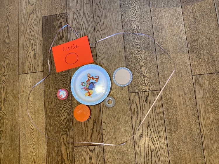 The first shape to teach is a circle and then a square. I have a link to a couple of helpful YouTube video on shapes which are worth watching first – see the useful resources page here.