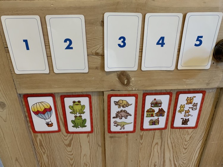 Numbers Remember to place at eye level and on a door used throughout the day. I purchased the flashcards from Amazon. There are many available. I recommend those with both numerals and picture cards as above.