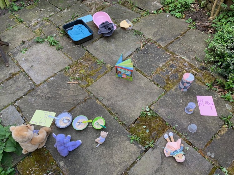 - Some form of chairs – we used a tin, cup and pot. It doesn’t matter what you use but ideally, you would have a big, medium and small one.