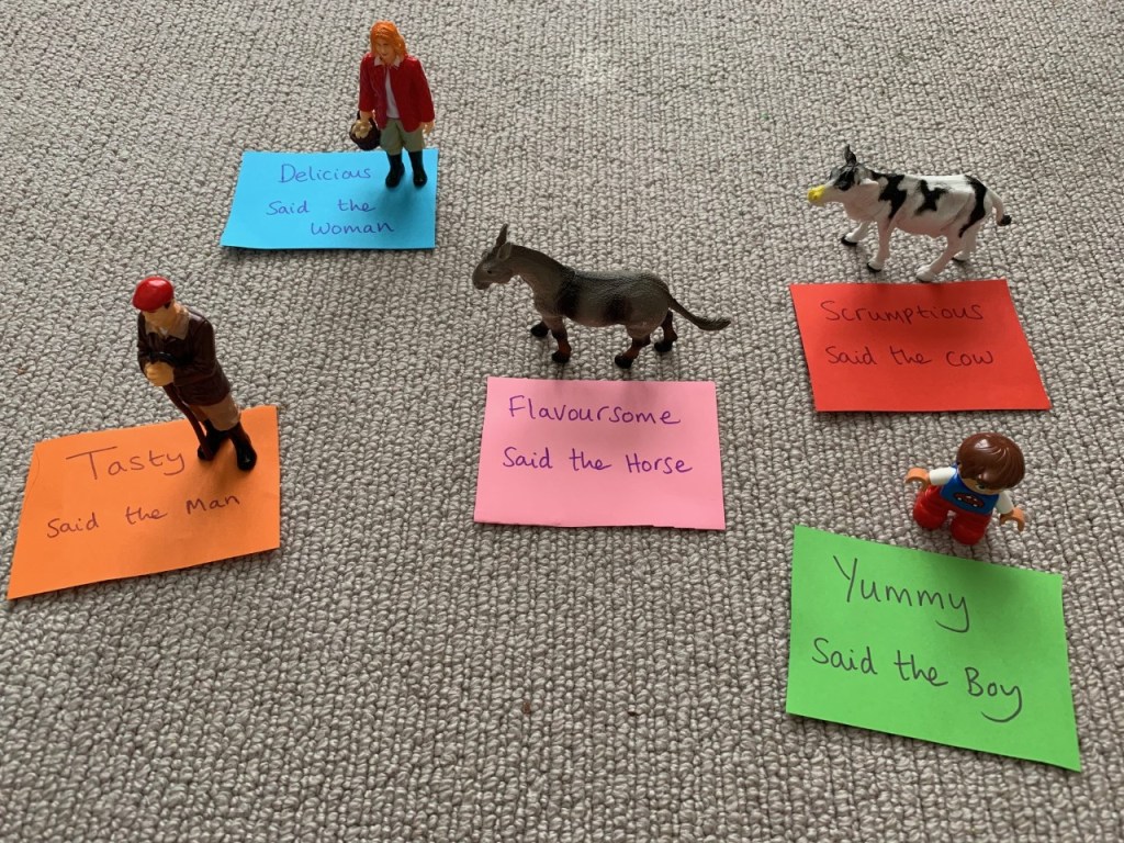 One you have read or watched the story it’s time to act it out, concentrating on the language patterns of the story.