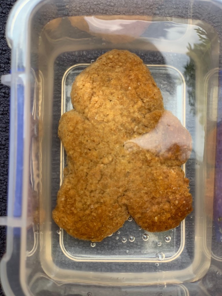 - Watch what happens. Our changed very quickly. Look at the gingerbread man every 30 seconds and use the tongs to take it out to look at it. How has it changed? Is it still crunchy? Use the language of dissolving.