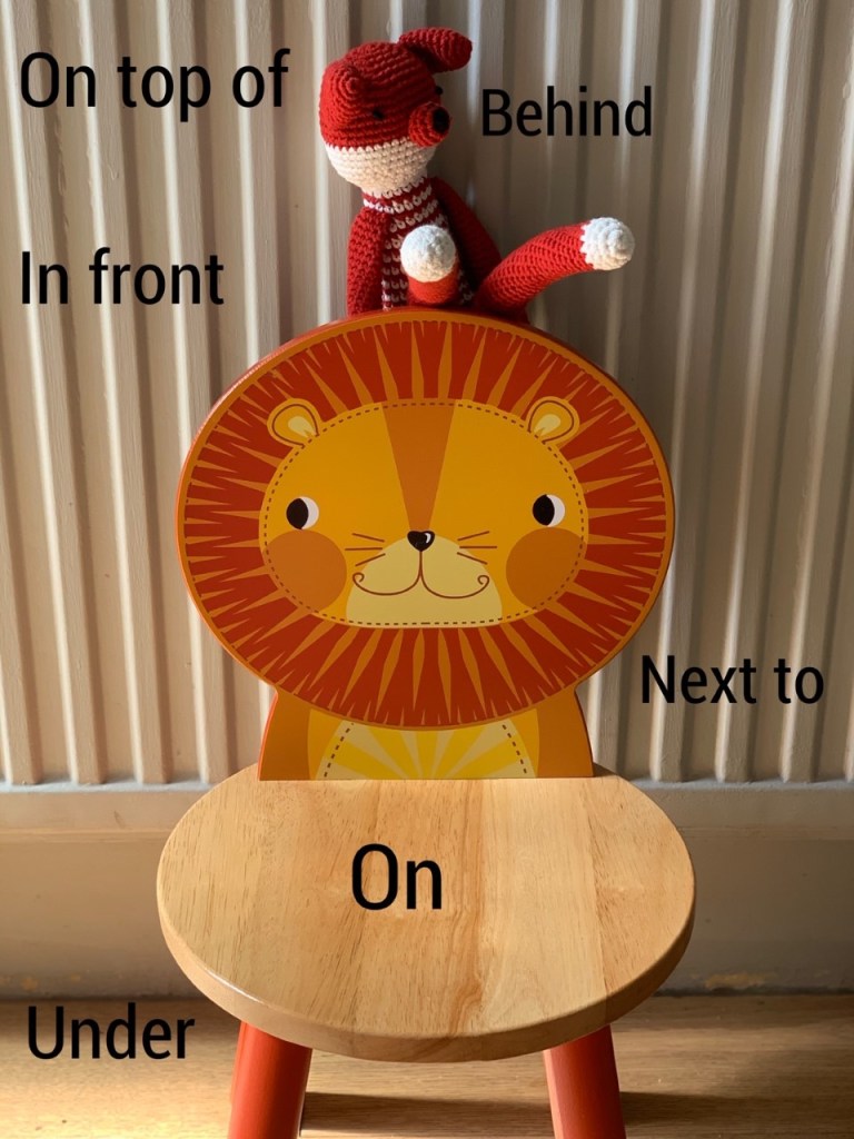 - You give positional language instructions while your child holds the fox and completes the obstacle course using your instructions.