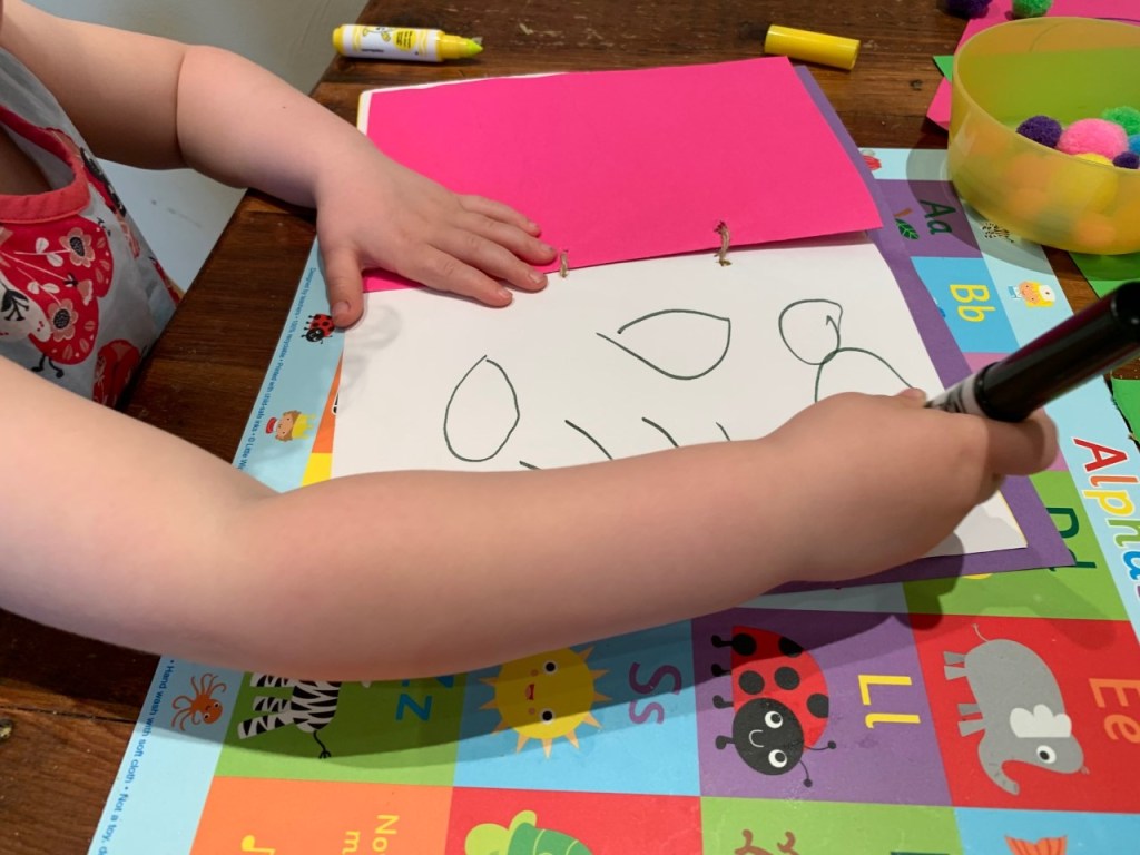 Children love to create books as it gives them ownership of the marks they make and will then read it to members of their family or toys!