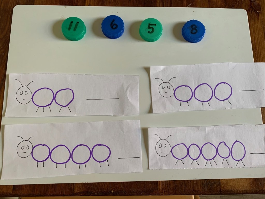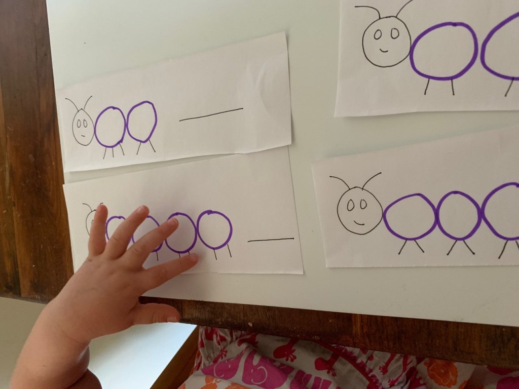 - Ask your child to count how many legs there are on each of the caterpillars. Make sure they use one number name for each leg.