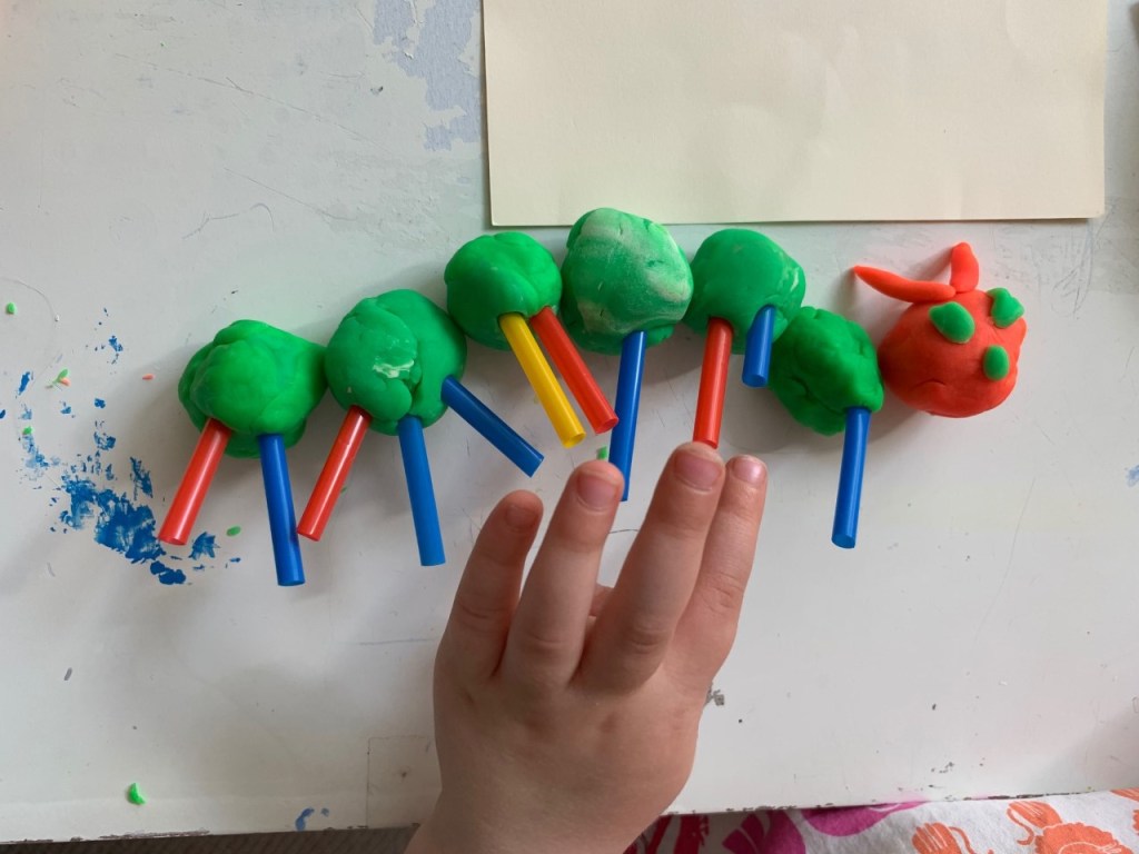 - You will need: The Very Hungry Caterpillar book, play dough, straws and numbers on cards. Choose numbers your child needs practise with.